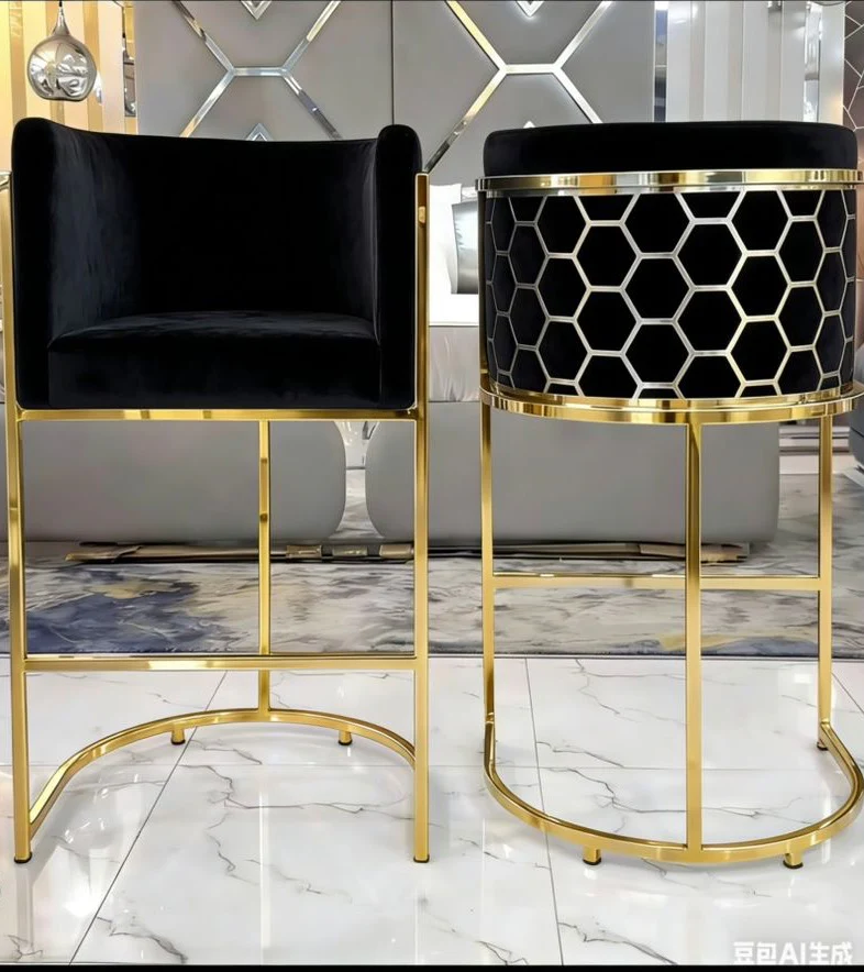 KCW FURN-Catherine Velvet Bar Stool (Available in Black/Gold)